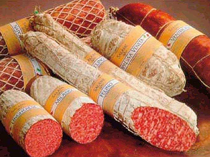 fein gekörnte Salami mit Naturschimmel, luftgetrocknet, ca. 3 Monate gereift, kräftiger Duft und feiner milder Geschmack