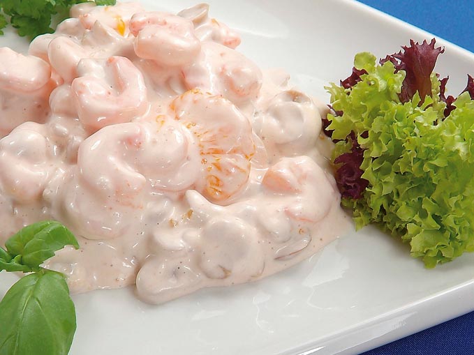 Krabben, Champignons und fruchtige Mandarinen in einer edlen Cocktailsauce, Krabbeneinwaage: 40 %