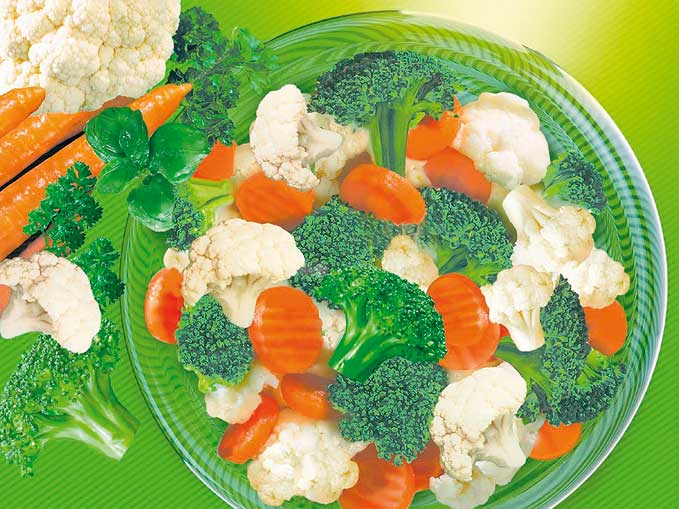 mit Brokkoli, Blumenkohl und Karottenscheiben